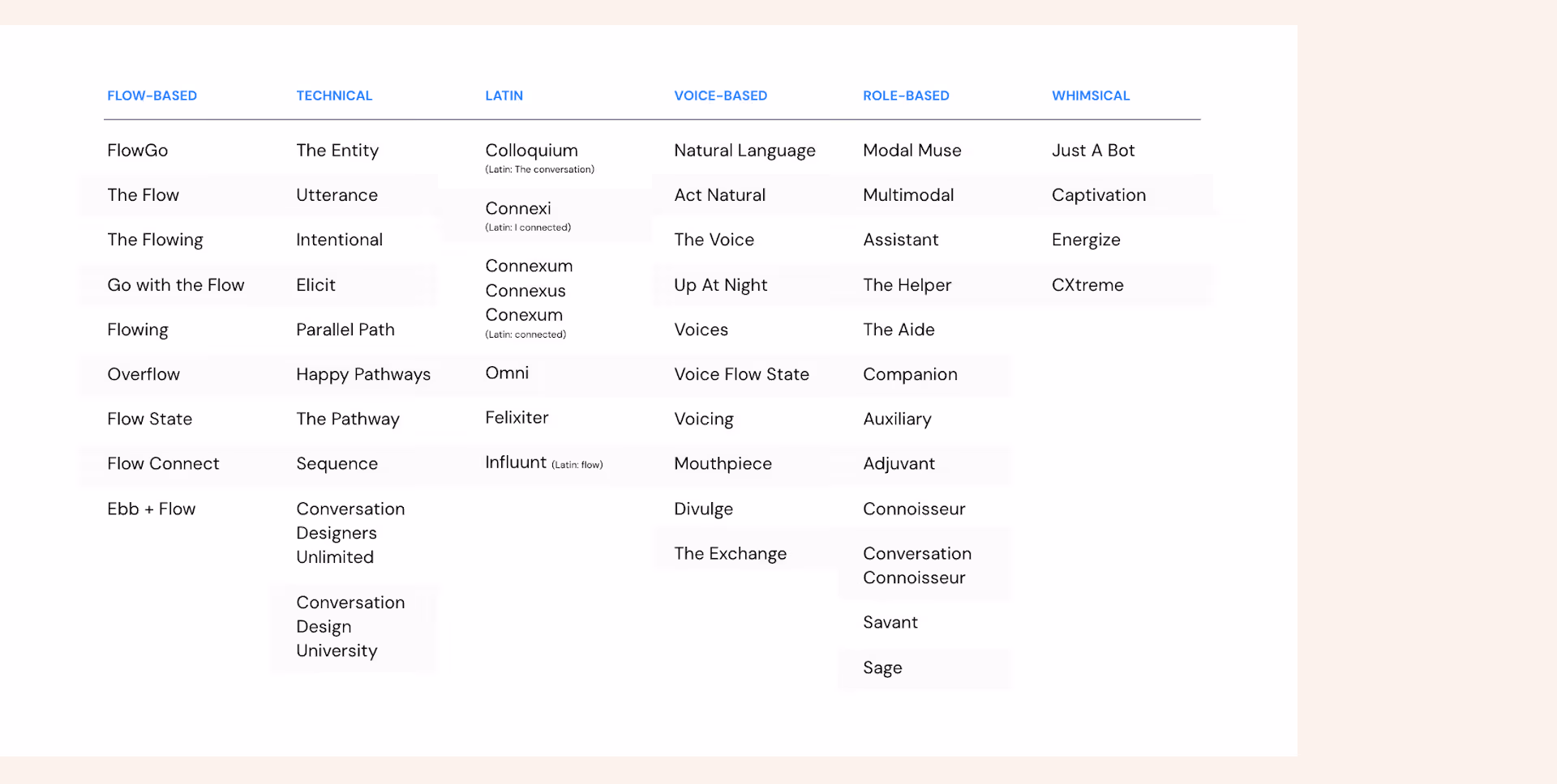 We searched for a name that could capture the varied experiences of conversational AI teams—who might be copywriters, designers, or engineers. It also had to be expansive enough to keep up with AI. During this work, ChatGPT had its big break and AI was suddenly everywhere.
