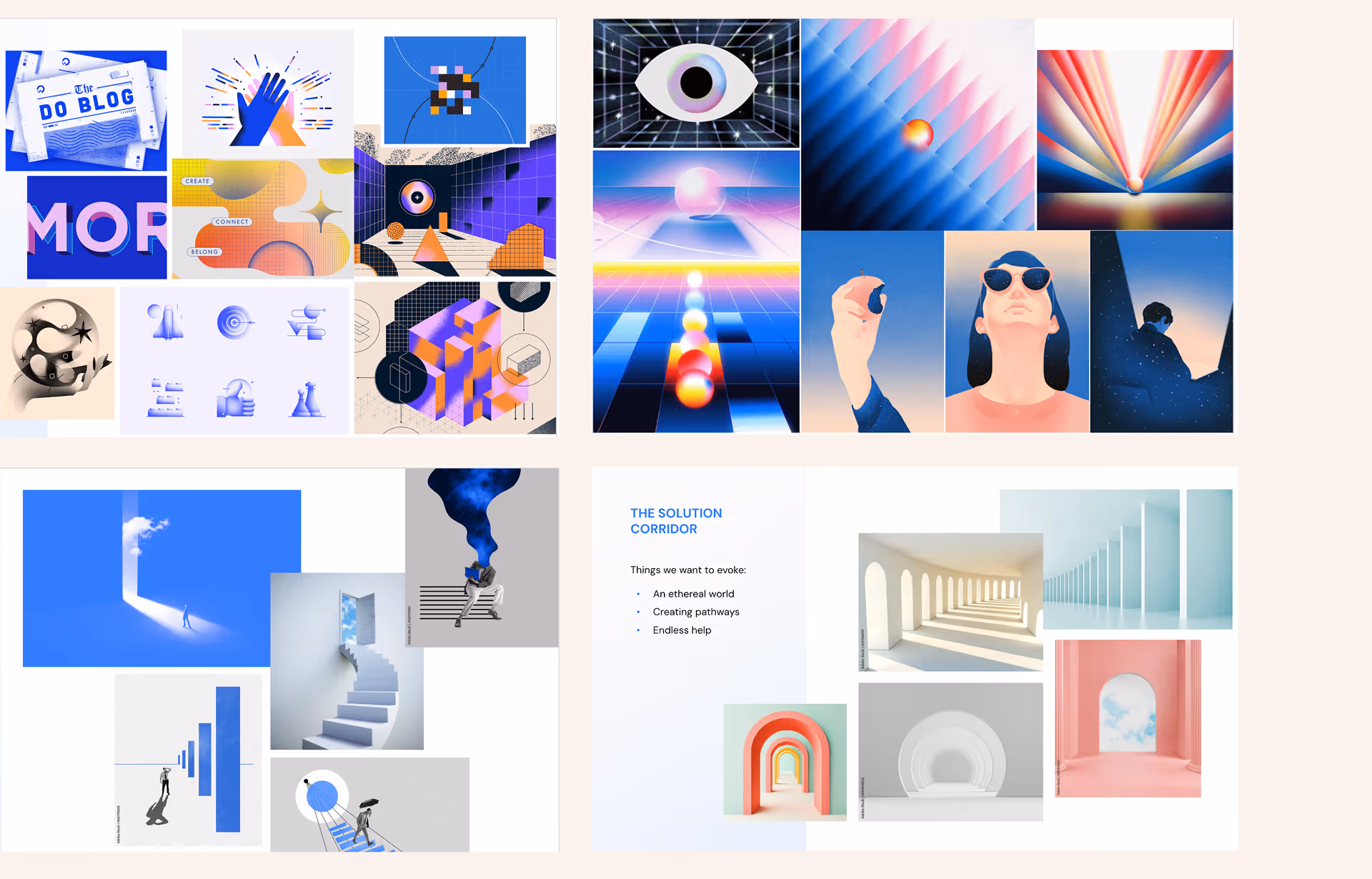 With the visuals, we sought to create an ethereal world where endless possibilities could lead down endless paths. And, to incorporate AI imagery. Conversation bots were increasingly using large language models and it was essential we celebrate that with motifs the Voiceflow team could generate on their own with AI.