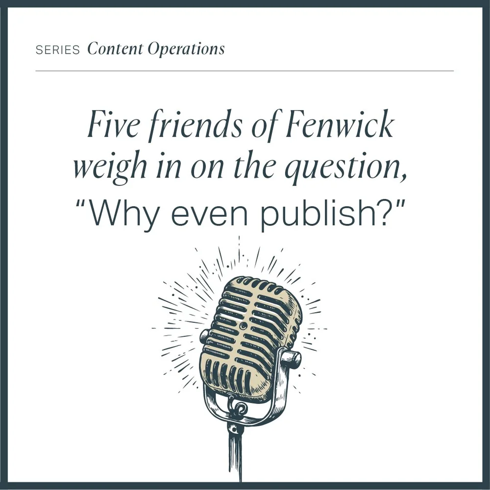 Five friends of Fenwick weigh in on the question, “Why even publish?”