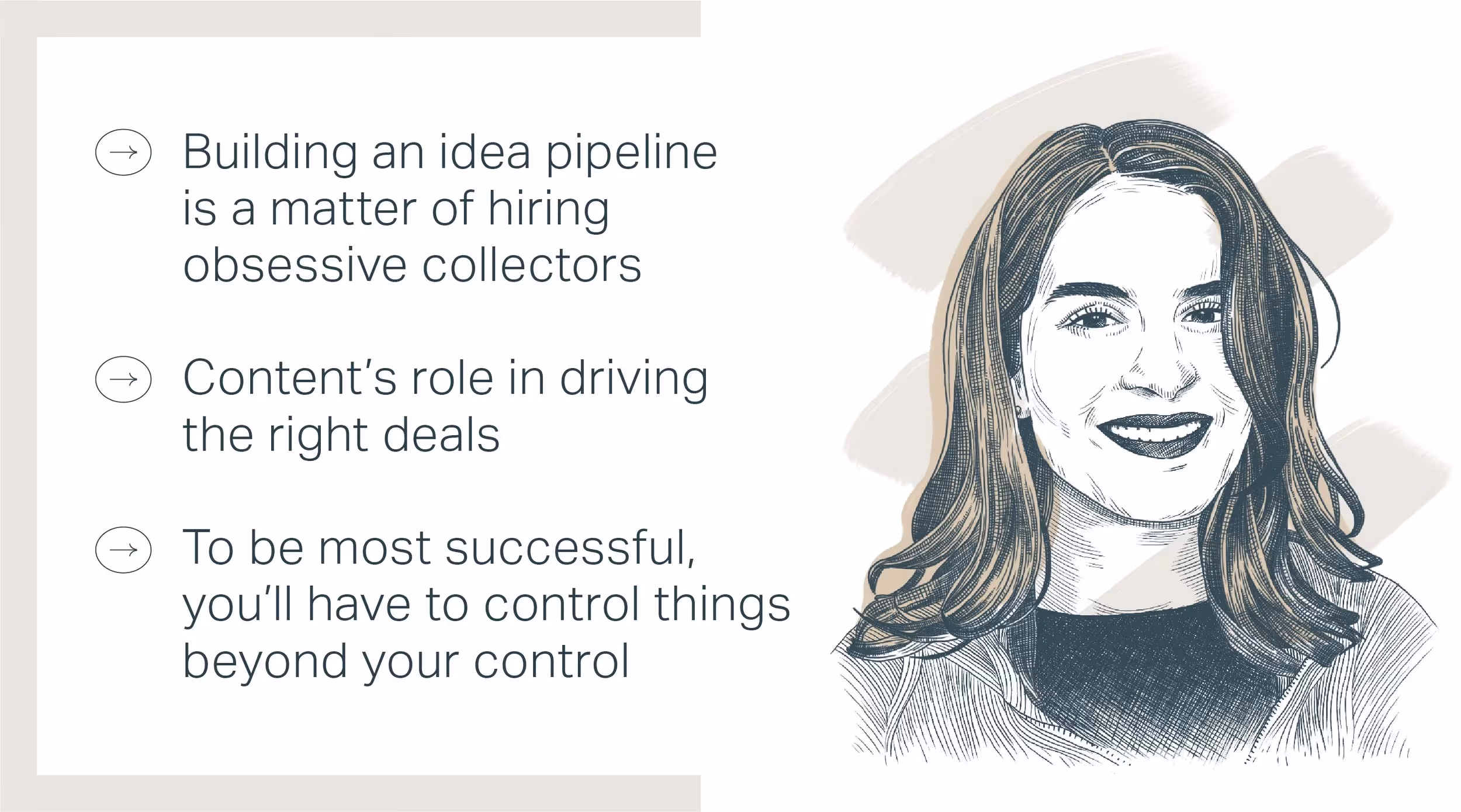 In our interview about content operations, she discusses why building an idea pipeline is a matter of hiring obsessive collectors, content’s role in driving the right deals, and why to be your most successful, you’ll have to control things beyond your control. (Good luck.)