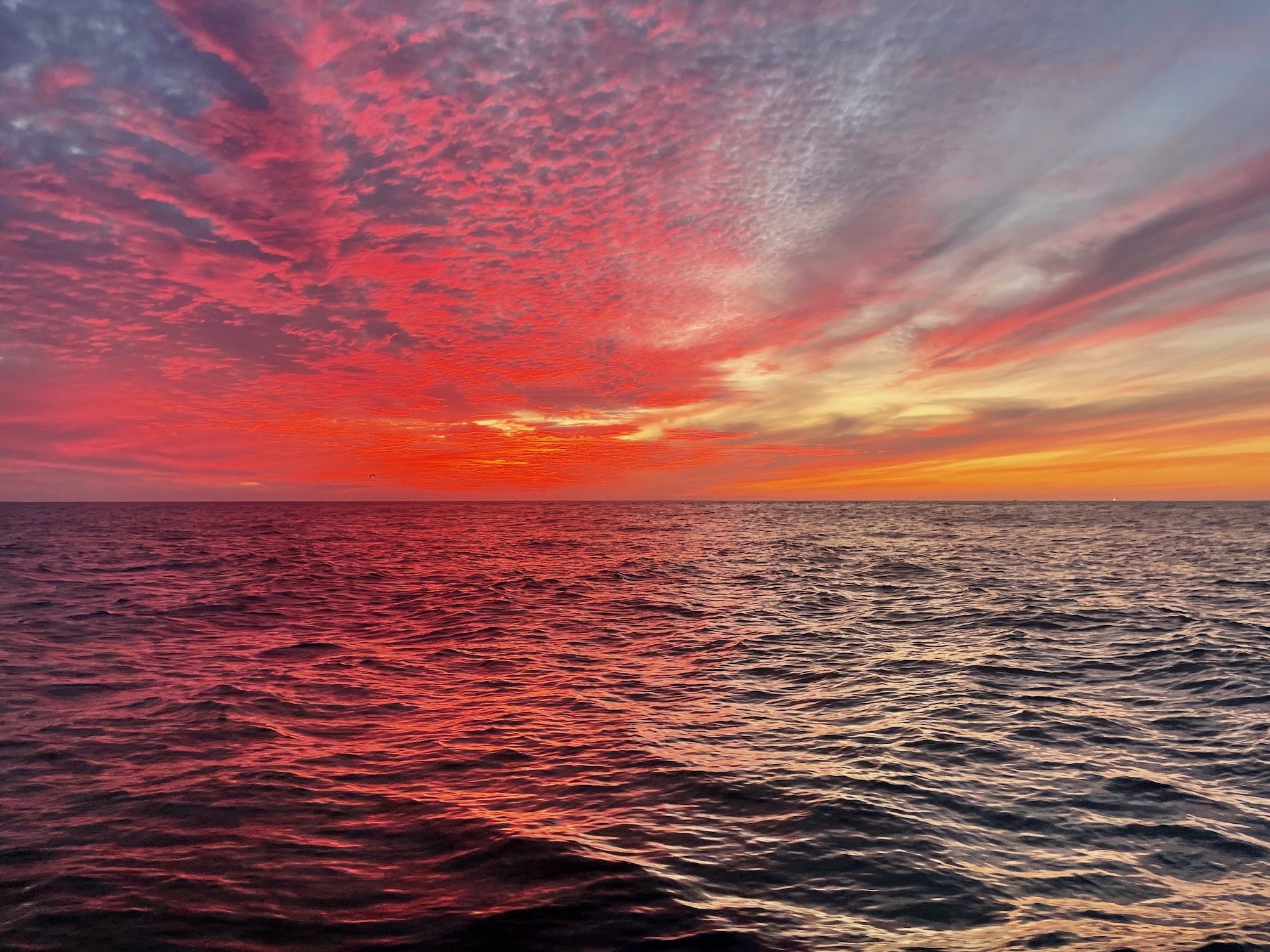 Just as I was about to overheat, weather blew in and the sun was about to drop behind the horizon. Ripples of clouds were ablaze in orange and red which reflected off the slate-green sea. The Klamath Mountains to the east were obscured by cloud and fog. I took a second to enjoy the moment, another day on the water, observing both the rise and the fall of the sun. Then it was cold and my clothes were wet, but there was still no time to change, we were at the next string and I had to grab the buoy.