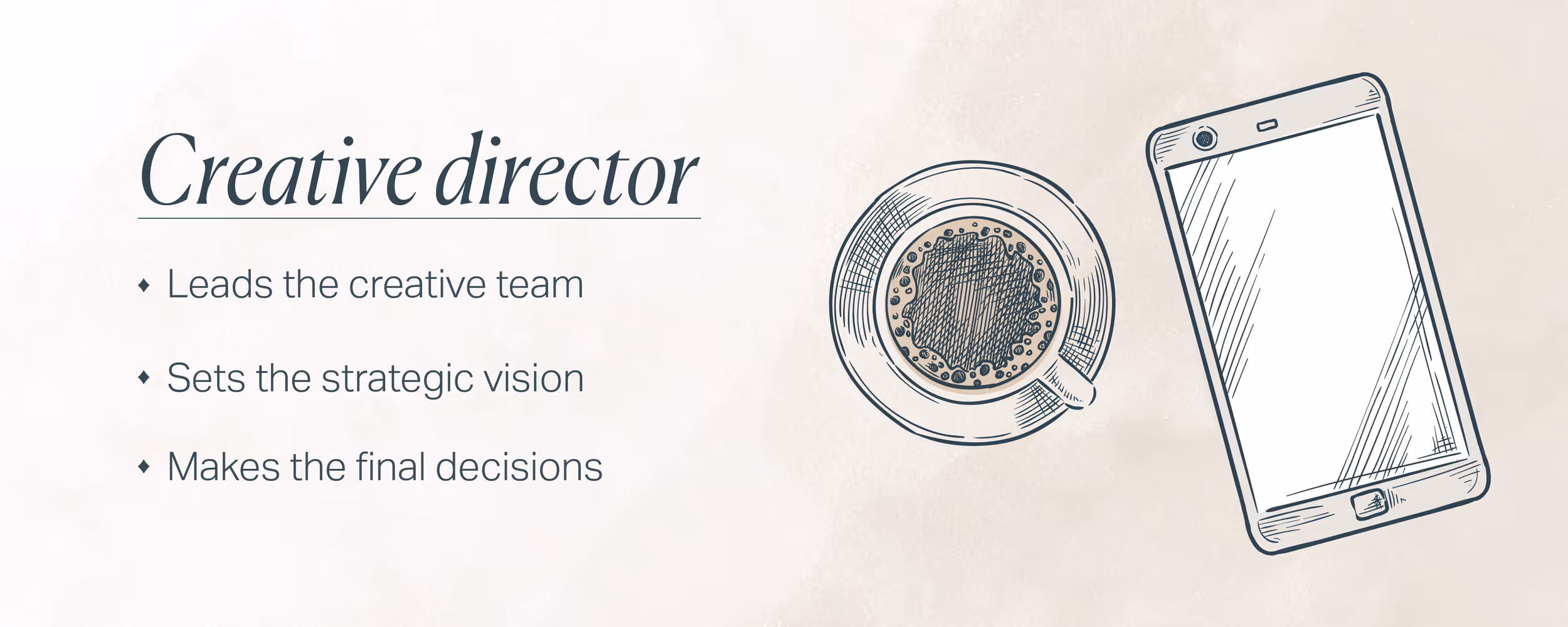While no one person can run the train on their own, it does benefit from a singular conductor, and that’s your creative director. They’ve got experience in listening to clients (internal or external), intuiting their goals and tastes, and imbuing the project with a unified, thematic vision. This is a strictly senior role, and if you’ve borrowed “a designer” from the product team, they’re probably inexperienced at this.