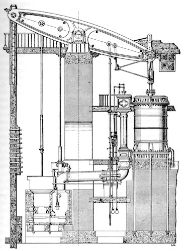 In 1856, l'usine des eaux de Saint-Clair cistern was constructed, with three large, vaulted, underground basins (~3,500 m2, a bit larger than an NBA basketball court) that naturally filtered water from the Rhône River. But it still needed to be pumped up to the surface and into homes, which required an enormous amount of force. This was accomplished with Cornish steam pumps aboveground, measuring 20 m high and 200 tons (as tall as a four-story building and weighing almost as much as the Statue of Liberty), that pumped ~20,000 m³ of water per day to the different Lyonnais arrondissements.