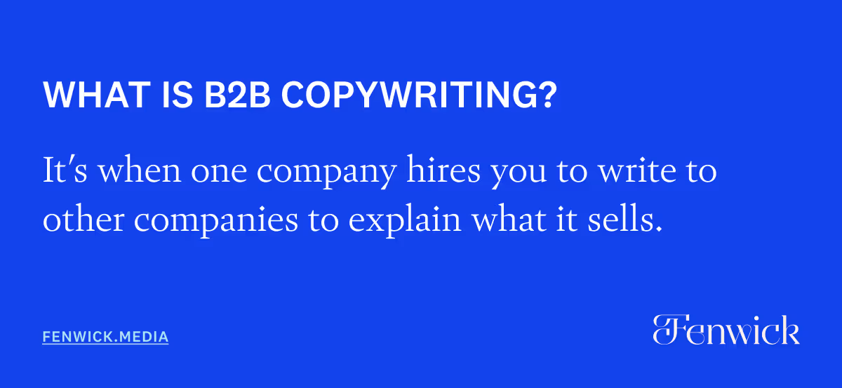 Business-to-business (B2B) copywriting is when you write for a company that wants to explain to other companies what it sells. That’s how a lot of companies make money—selling to other companies. Like when IBM sells servers to General Electric.